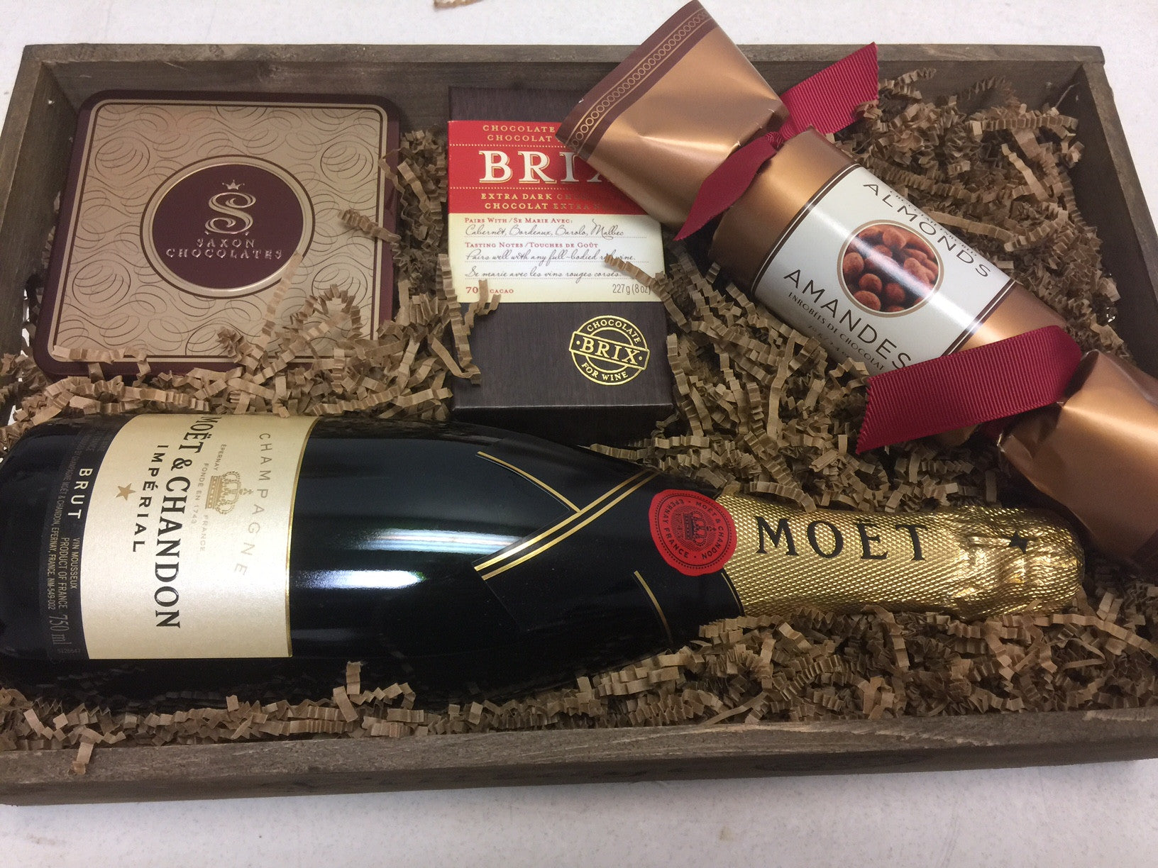 During the Holiday Season we had a lot of requests to make custom gift baskets for our clients. If you give us week or so, we can do so many customizations to your baskets. We can customize the ribbon, make a label with your brand on it, or even place your own branded items ( like book, magazines, etc.) in our baskets. You can also add wine or champagne.
